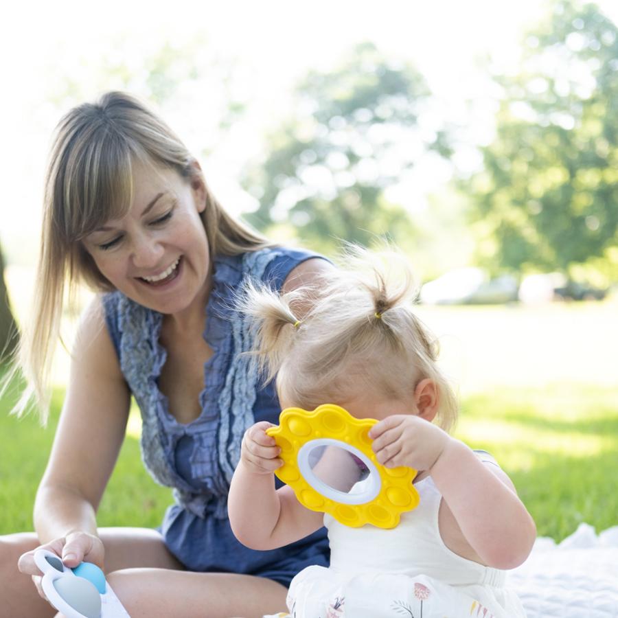Set of 2 sensory toys featuring silicone bubbles, bright colors, and a mirror Encourages sensory exploration, fine motor skills, cause-effect learning Billow features 4 bubbles built into rigide frame Bright features silicone outer edge with 10 dimpl bubbles, mirror in the center Both dimpl billow and dimpl bright are included Billow measures 4.6 x 6 x 1 inches Bright measures 6.25 x 6.25 x 0.62 inches Bubbles of billow and outer ring of bright made of 100% food-grade silicone BPA-free, fully safety tested, hand washable