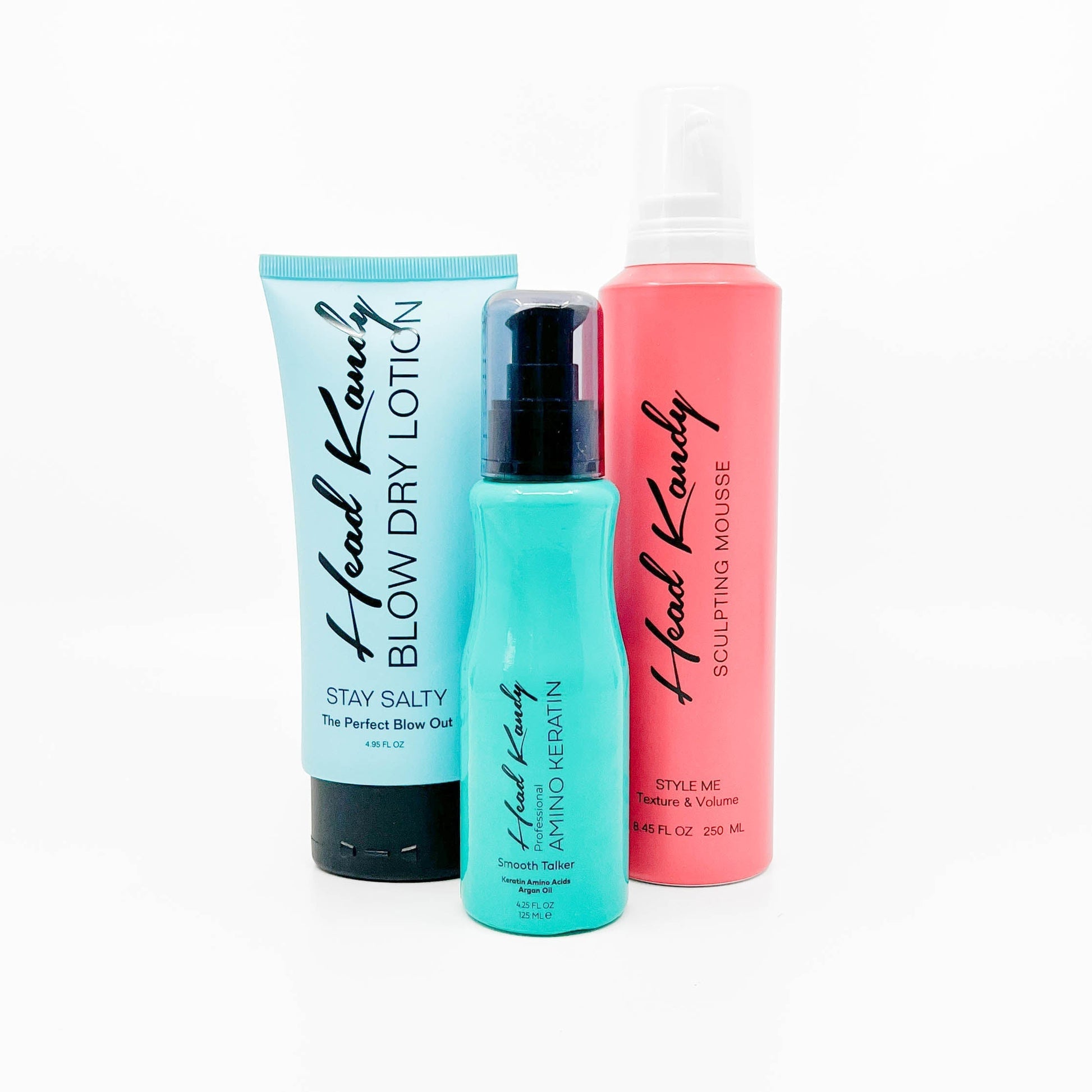Includes Stay Salty Blow Dry Lotion, Squad Goals Argan Oil, and the Style Me Mousse.