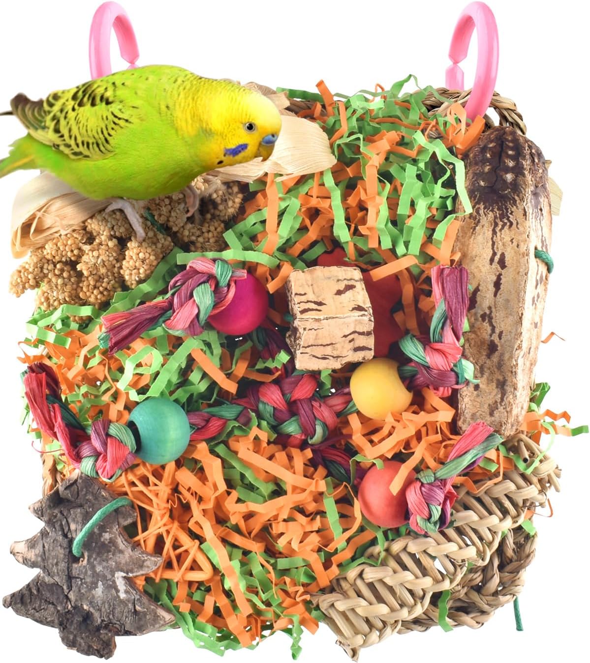 TO BE HAPPY BIRDS: Size of 6.6 x 6.6 inch, great for parakeet, cockatiel, sun conure, lovebird and more similar size of small birds to enjoy this pastime exploration toy
