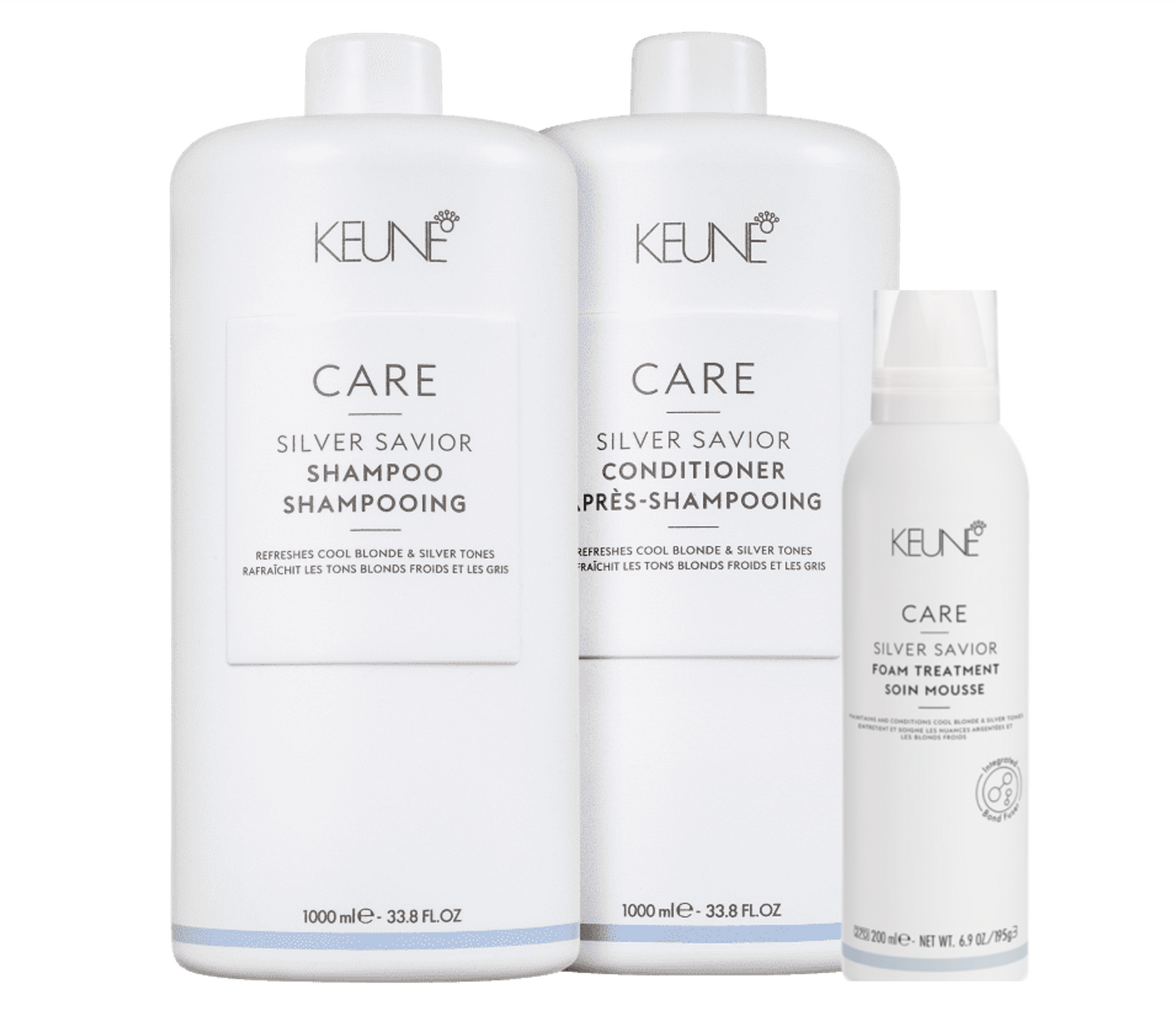 Meet Care Silver Savior by Keune. It’s here to banish yellowing and brassiness – and keep blonde, silver, white or lavender shades bright and fresh. Powerful purple pigments tone and cool, provitamin B5 softens and plumps and wheat proteins strengthen and thicken. Stay silvery, shine bright.